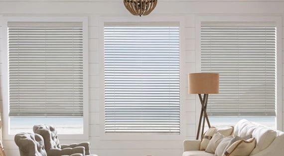 For a sleek, streamlined window treatment, our Modern Precious Metals® Aluminum Blinds are available in a wide range of finishes, including mattes, metallics and soft, pearlescent hues.